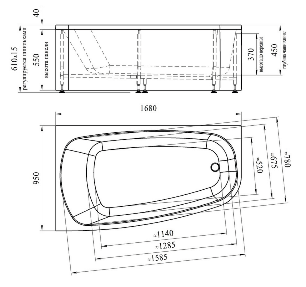 Ванна акриловая Радомир Рона 168х95 левая, на каркасе (1-01-0-1-1-344)
