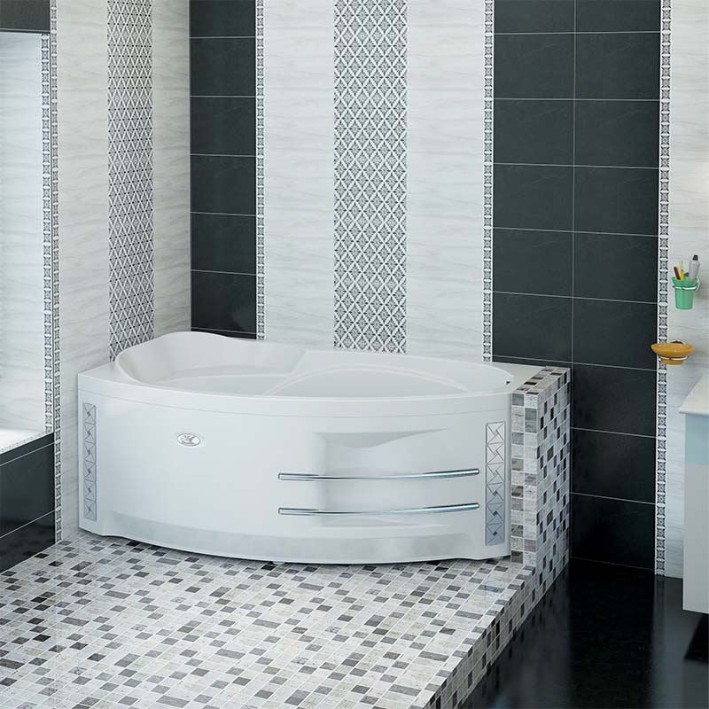 Модель имеет очень удобную конструкцию, предоставляя владельцу вместительную внутреннюю чашу. При этом ванна очень рационально размещается в углу помещения, что позволяет сэкономить больше свободного пространства. Внутреннее пространство чаши имеет мягкие формы и плавные изгибы. Пологая спинка, выступы для рук и возвышающееся изголовье позволяют занять максимально комфортное положение. В углу находится небольшое отформованное сиденье, что является еще одним вариантом нахождения в ванне.