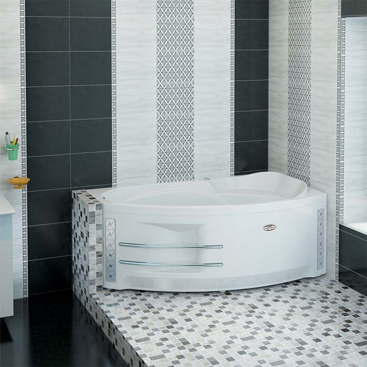 Модель имеет очень удобную конструкцию, предоставляя владельцу вместительную внутреннюю чашу. При этом ванна очень рационально размещается в углу помещения, что позволяет сэкономить больше свободного пространства. Внутреннее пространство чаши имеет мягкие формы и плавные изгибы. Пологая спинка, выступы для рук и возвышающееся изголовье позволяют занять максимально комфортное положение. В углу находится небольшое отформованное сиденье, что является еще одним вариантом нахождения в ванне.