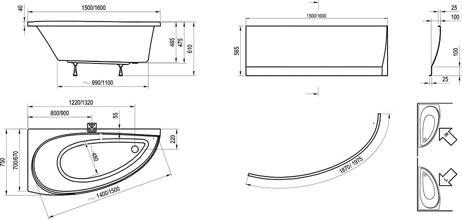 Размер: 150x75 см, левосторонняя, без слив-перелива в комплекте.