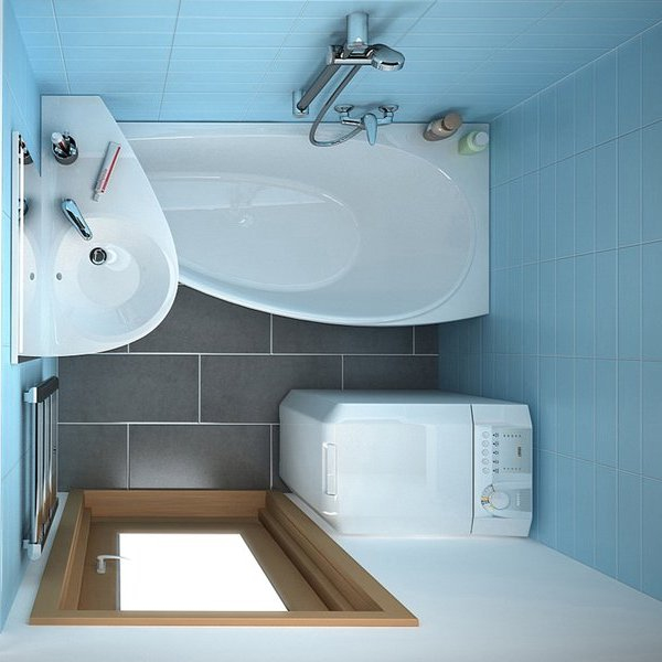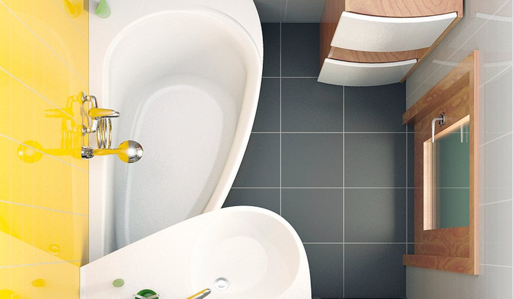 Акриловая асимметричная ванна решит пространство маленькой ванной комнаты.