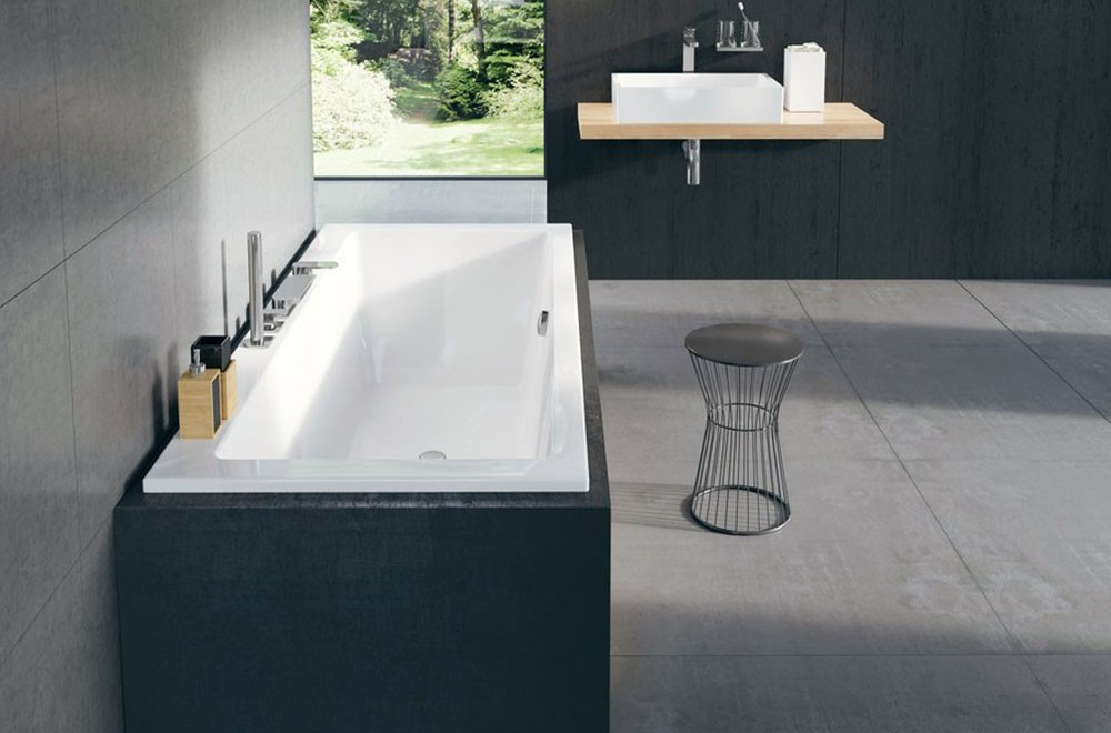 Минималистичная, но в тоже время необыкновенная ванна. Обычную симметрию прямоугольных ванн дизайнер изменил, сделав один борт шире другого. Таким образом, ванна приобрела новый облик и большую практическую ценность.