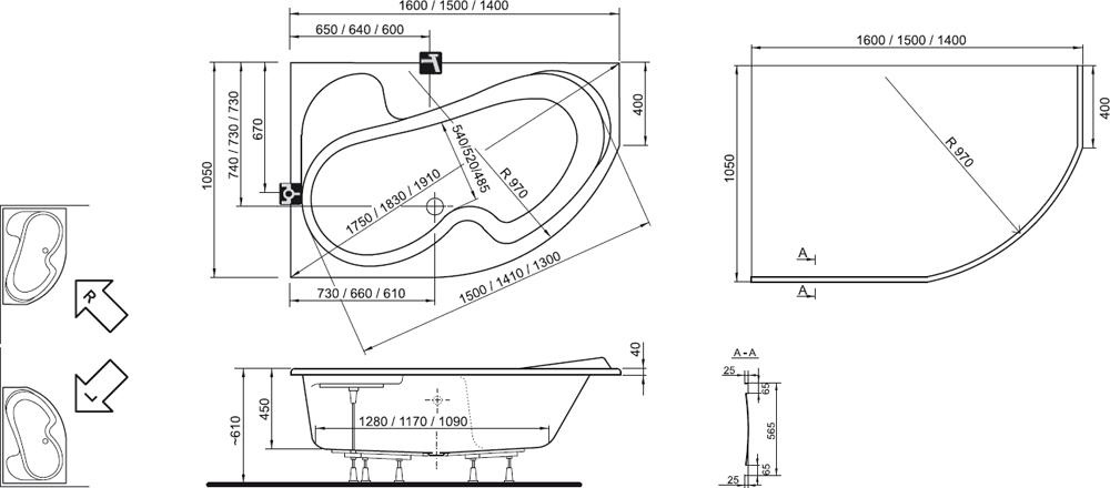 Размер: 140x105 см, правосторонняя, без слив-перелива в комплекте.