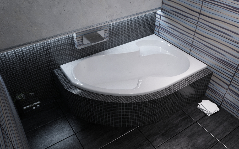 Акриловая асимметричная ванна серии Rosa I с оригинальной формой и практично решенными внешними размерами.