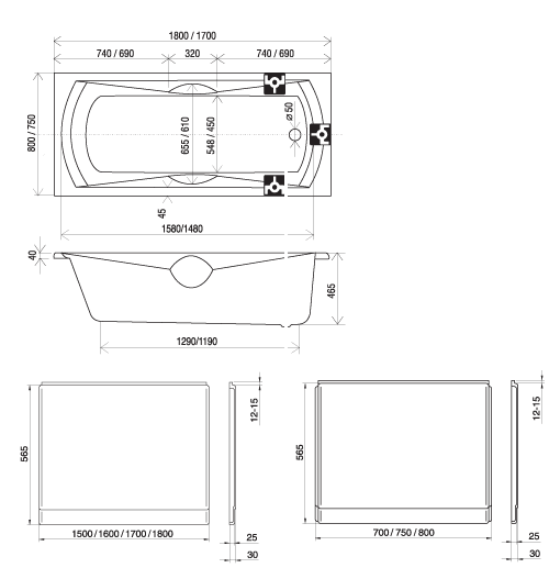 Ванна акриловая Ravak Sonata 1700*750*610 с ручками, с подголовником (C901000000)