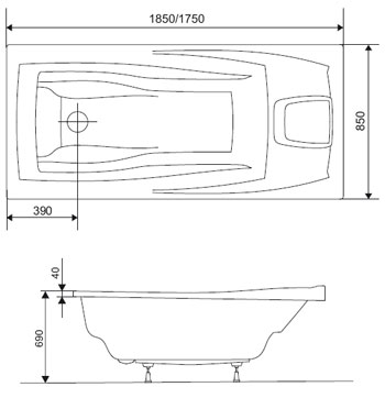 Ванна акриловая Ravak You 175x85 WARM FLOW белая (C061000000)