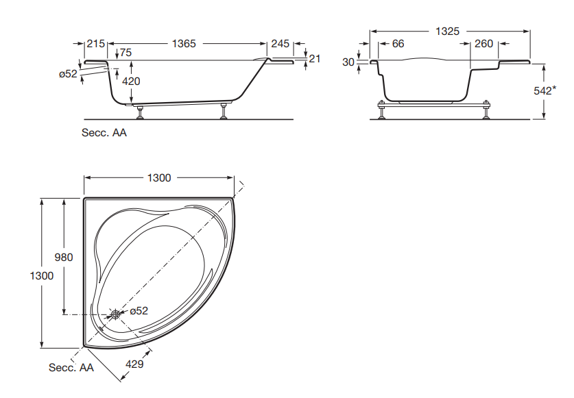 - 1. Ванна акриловая Roca Bali 130х130 угловая симметричная со встроенной спинкой, сиденьями и подголовником.