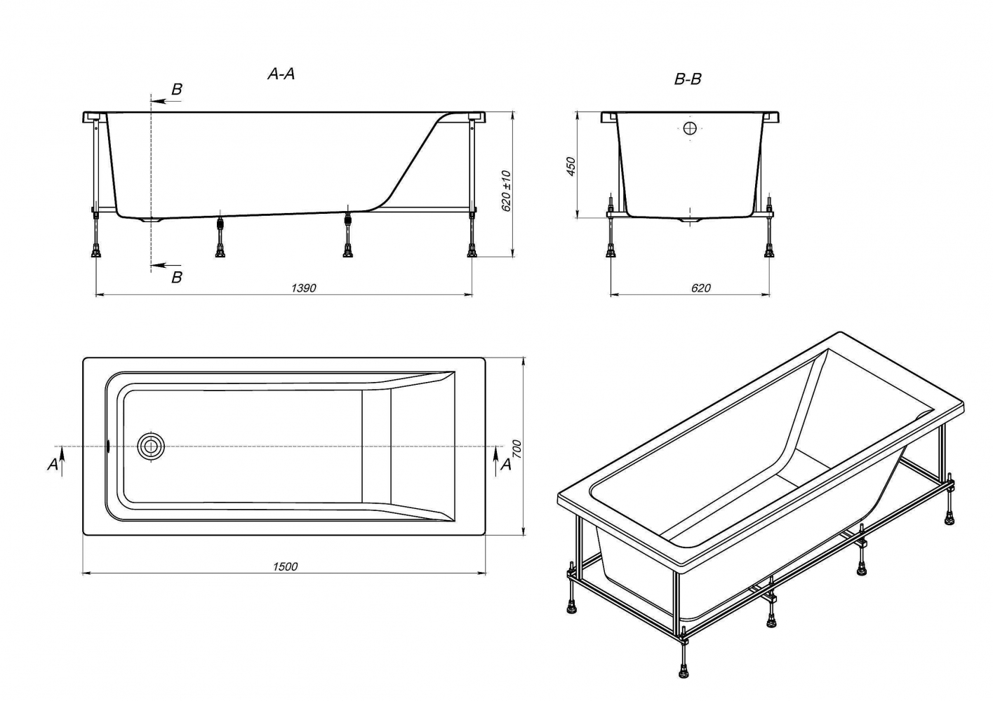 Каркас для ванны Roca Easy 150х70 (ZRU9302906)