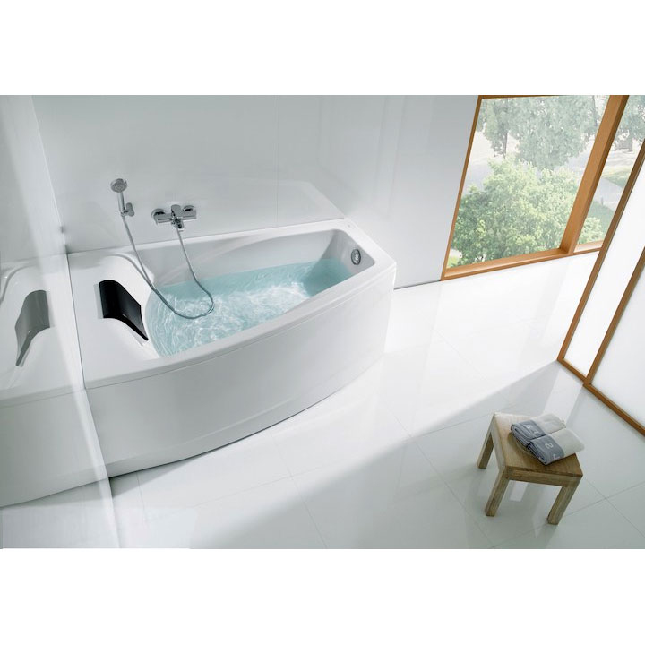 Ассиметричная акриловая ванна Roca Hall Angular с плавными линиями украсит любую ванную комнату.
