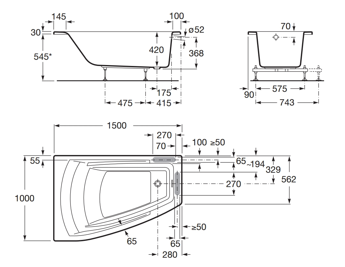 - 1. Ванна акриловая Roca Hall Angular 150х100 левосторонняя