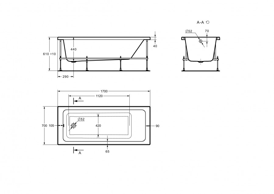 Ванна акриловая Roca Leon 70x170x44 белая (7.2486.5.80.0)