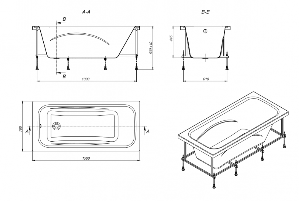 Монтажный комплект к акриловой ванне Roca Line 150х70 (ZRU9302983)