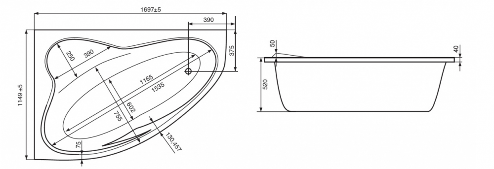 Монтажный комплект (ручки хромированные, каркас, комплект креплений к стене, к фронтальной панели, система слив-перелив) докупается отдельно. Дополнительно можно приобрести фронтальную и боковую панель, подголовник.