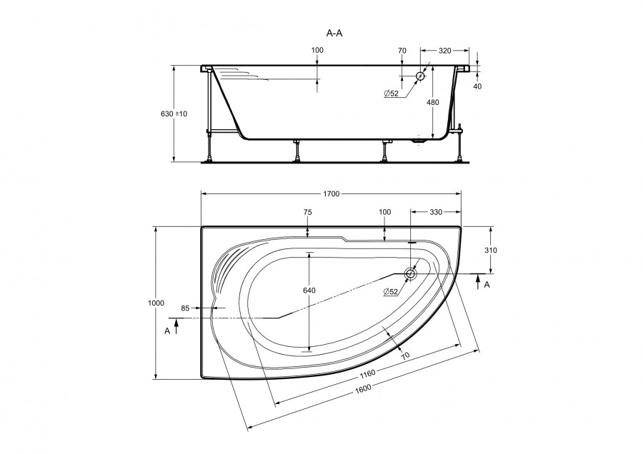 Ванна акриловая Roca Merida 100x170x50 белая (7.2486.4.400.0)