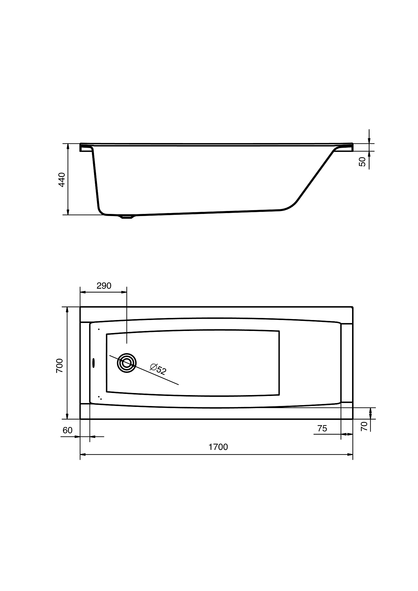 Состав поставки: ванна акриловая