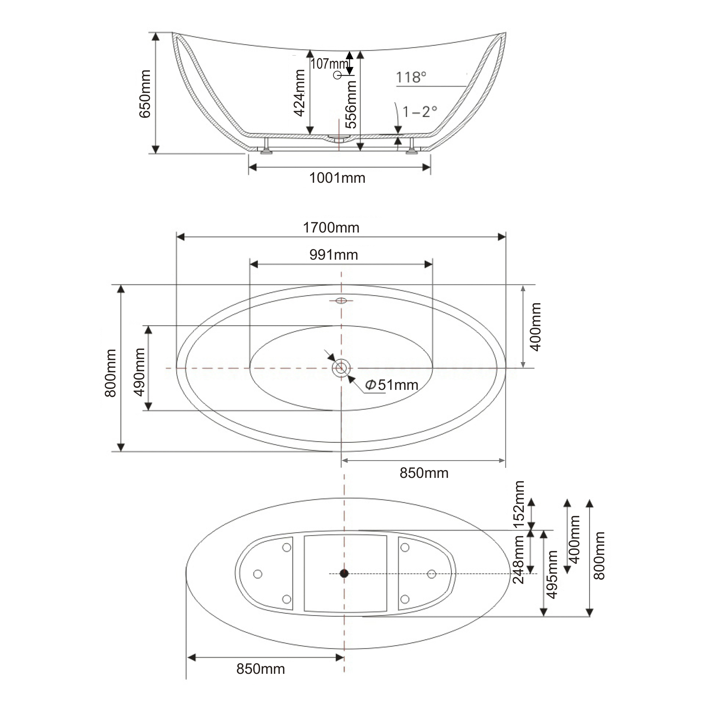 Ванна акриловая Swedbe Vita 170х80х65 отдельностоящая белый (8805)