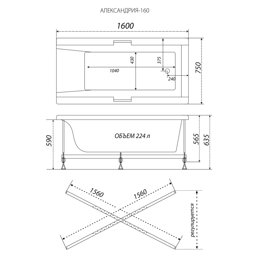Прямоугольная акриловая ванна Алекса 160х75 от российской торговой марки Triton - лаконичный дизайн и безупречная эргономичная конструкция для приверженцев классичесского стиля.