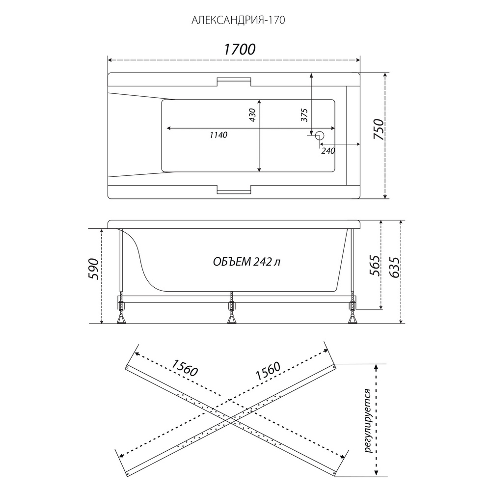 Ванна акриловая Triton Алекса 170x75 белая
