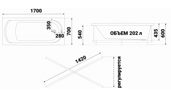 Ванна акриловая Triton Дюна 170x70 белая