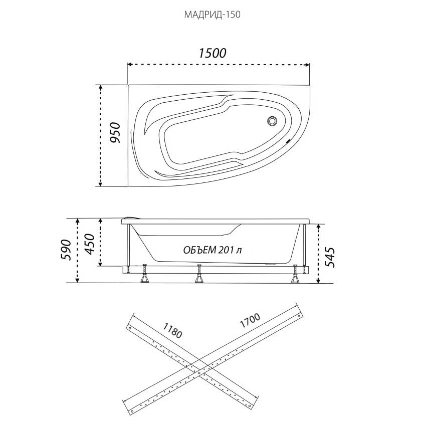 Ванна акриловая Triton Мадрид 150x70 правая, белая