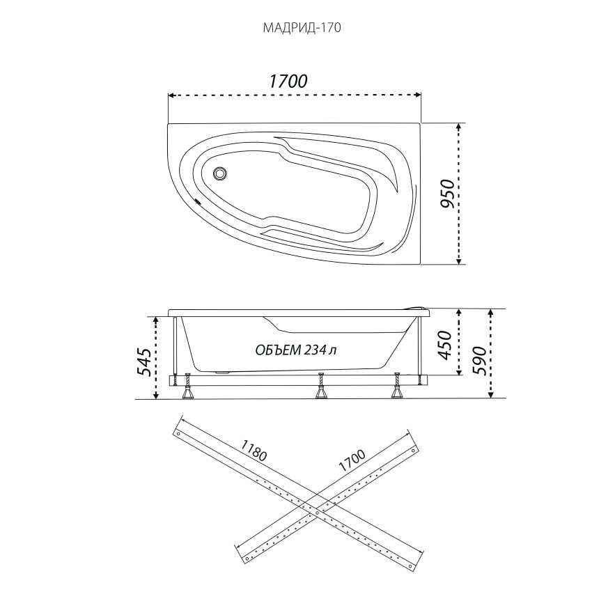 Ванна акриловая Triton Мадрид 170x70 левая, белая