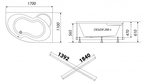 Ванна акриловая Triton Мари 170x110 правая (V78)