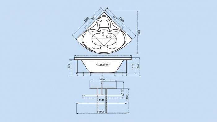 Ванна угловая Тритон Сабина 160х160 см. Без каркаса и слив-перелива в комплекте (приобретается отдельно).