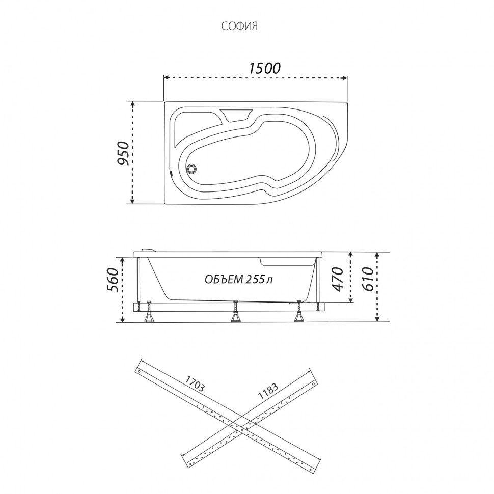 Ванна акриловая Triton София 150x950 левосторонняя белая (V159)