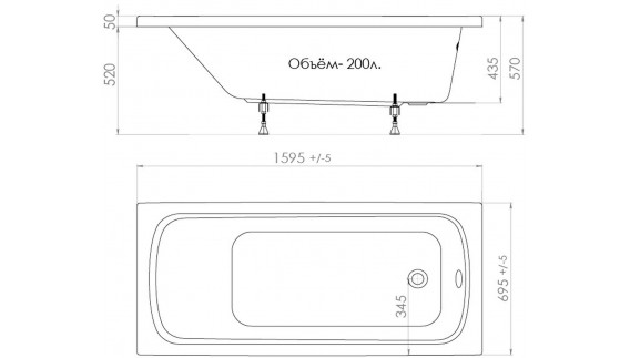 Ванна прямоугольная Тритон Стандарт 160х70 см. Без каркаса и слив-перелива в комплекте (приобретаются отдельно).