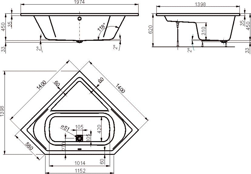 В комплект входит: Ванна акриловая VagnerPlast Cavallo Corner 140 140х140х45 (VPBA140CAV3X-04)