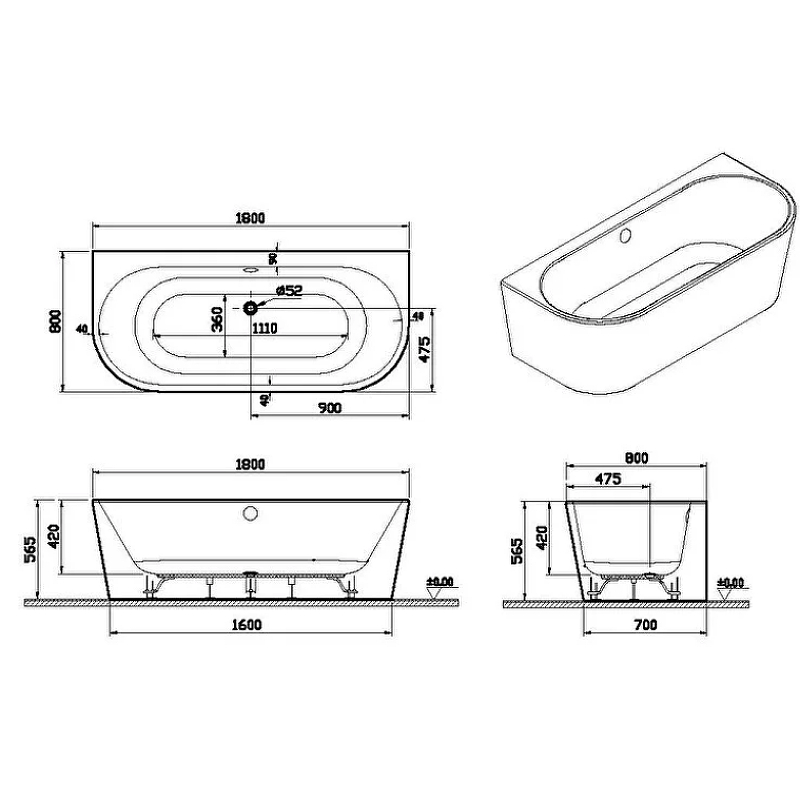 Ванна акриловая Vitra Geo 180х80 белая (65420006000)