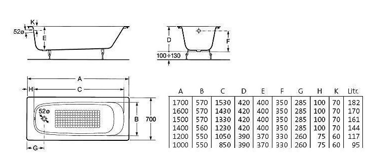 Традиционная форма в сочетании с сияющим оттенком белого цвета создает выразительный образ, символ безукоризненной чистоты и опрятности. Форма чаши спроектирована с учетом анатомических особенностей человеческого тела, благодаря углу наклона торцевой стенки достигается максимальное расслабление мышц спины. Белоснежное эмалевое покрытие наносится по специальной технологии в 6 слоев, благодаря чему достигается устойчивость к воздействиям внешней среды. Широкие бортики в торцах ванны обеспечивают достаточно места для размещения необходимых гигиенических средств.