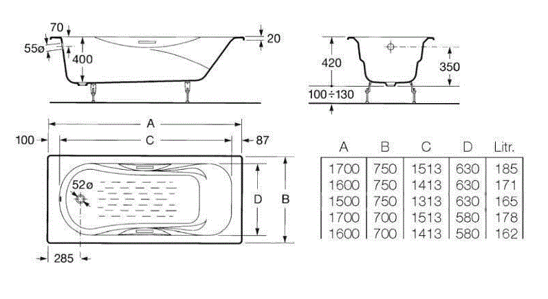 Компактная ванна с эргономичной формой чаши не только обеспечивает комфортное положение тела благодаря специальным выступам - подлокотникам, но и обладает стильным дизайном. Высокопрочная титановая эмаль толщиной в 7 слоев наносится по специальной технологии, за счет чего достигается устойчивость к повреждениям. Ванны Roca славятся своим белоснежным покрытием, которое долгие годы сохраняет свой первозданный вид. Особые свойства материала делают его идеальным теплоизолятором – вода в такой ванне дольше остается горячей. При этом, известный недостаток таких ванн – их тяжесть, в ваннах Roca решен за счет использования листа меньшей толщины. Благодаря этому вес ванны обычно не превышает 85 кг.