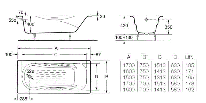 Компактная ванна с эргономичной формой чаши не только обеспечивает комфортное положение тела благодаря специальным выступам - подлокотникам, но и обладает стильным дизайном. Высокопрочная титановая эмаль толщиной в 7 слоев наносится по специальной технологии, за счет чего достигается устойчивость к повреждениям. Ванны Roca славятся своим белоснежным покрытием, которое долгие годы сохраняет свой первозданный вид. Особые свойства материала делают его идеальным теплоизолятором – вода в такой ванне дольше остается горячей. При этом, известный недостаток таких ванн – их тяжесть, в ваннах Roca решен за счет использования листа меньшей толщины. Благодаря этому вес ванны обычно не превышает 85 кг.
