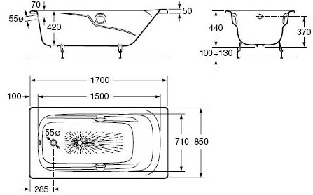 Дополнительно для заказа доступны: Ножки для чугунных ванн Roca (150412330), ручки хром (526805010), ручки для ванны Roca Akira хром (526804010), экран боковой для ванны Roca Akira / Ming 850 (250183000).