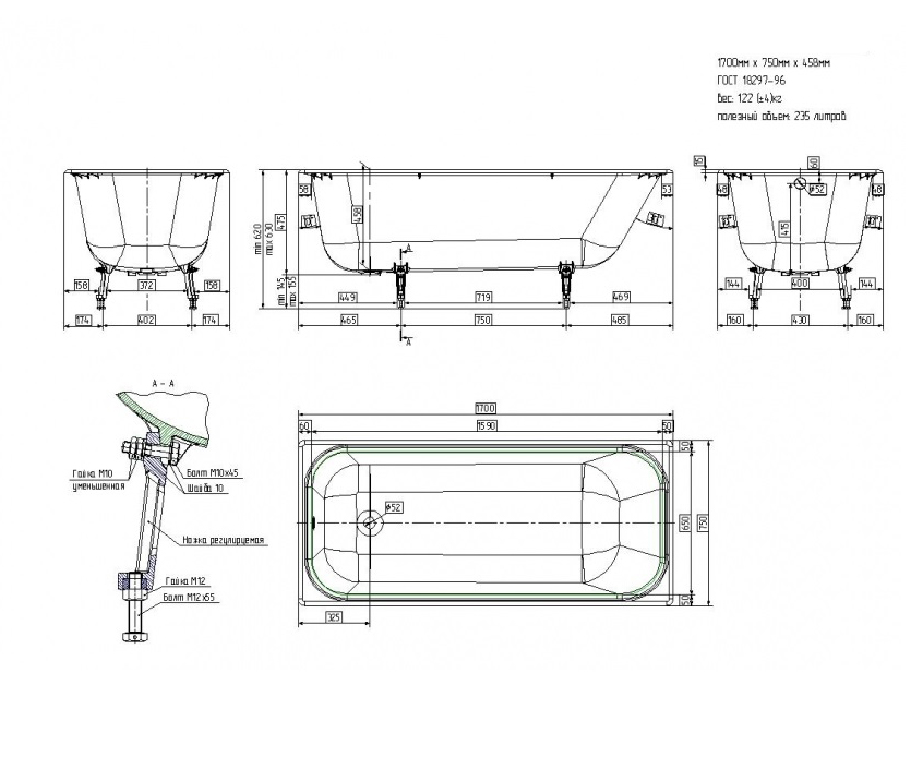 - Ванна соответствует ГОСТ 18297-96, EN 14516, ISO 28706-1.