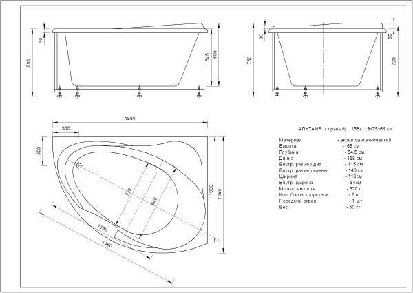 Глубокая и объемная ванна Альтаир, позволит комфортно расположиться в чаше. Большая емкость и глубина при компактных внешних размерах не оставит Вас равнодушными, а качество ванных процедур скрасит Ваши будние дни.