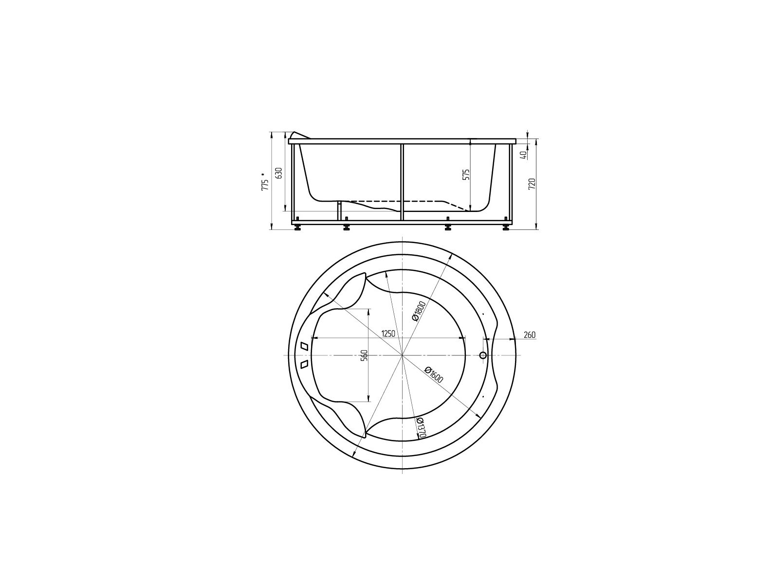 Круглая акриловая ванна Акватек Аура 180х180х72 см с гидромассажем, с аэромассажем, ПН управление, со смесителем Ниагара Виега, с хромотерапей "Звездный Дождь", на каркасе, со сливом переливом и фронтальным экраном.