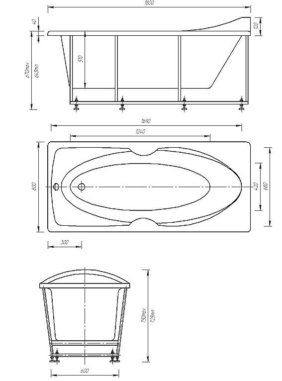Акриловая ванна Акватек Европа 180х80х67 с гидромассажем, на каркасе, со сливом переливом и фронтальным экраном.