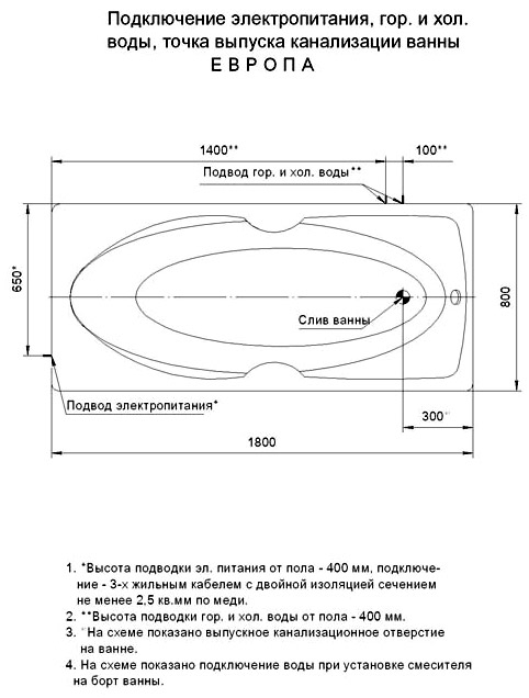 Классическая форма, комфортное расположение головы на приподнятом изголовье. Отдохните от повседневной суеты, обретите свежесть и бодрость в ванне Европа.