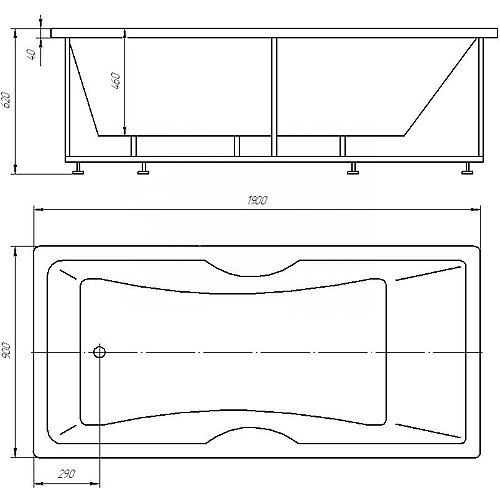 Акриловая ванна Акватек Феникс 190х75х62 см с гидромассажем, на каркасе, со сливом переливом и фронтальным экраном.