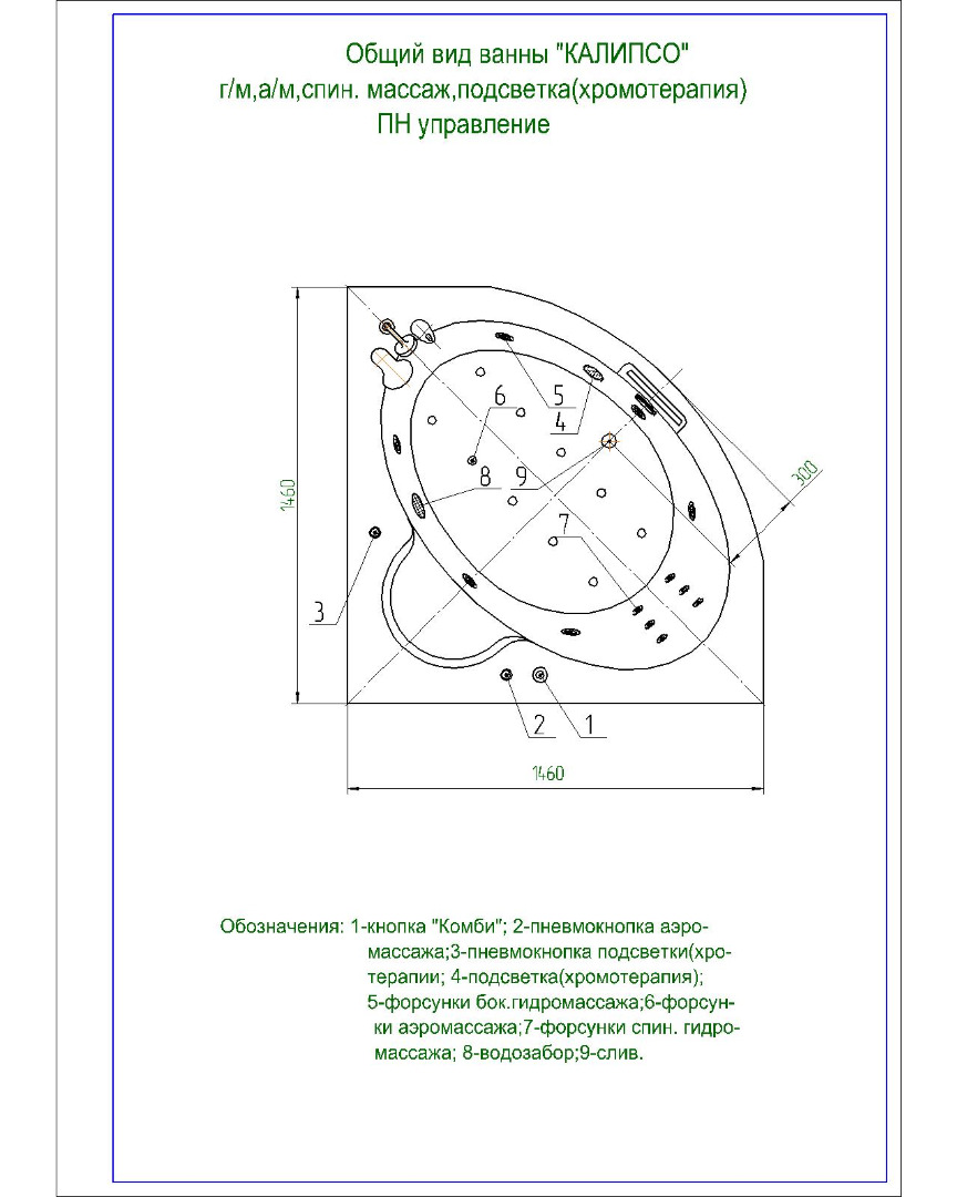 Гидромассаж Стандарт с пневматическим управлением. В комплекте 6 форсунок боковых.