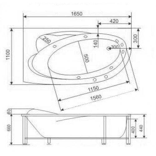Ванна каплевидная. Возможно лево- и правосторонний вариант. По длинной стене размер 165 см по узкой 105см. В самой широкой часте ванна имеет ширину 110 см.Ванна хорошо впишется в ванную комнату, в которой совместили ванную и туалет. В форме имеется подголовник, подлокотники и седушка.