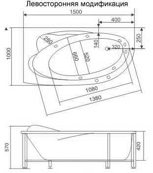 Ванна гидромассажная Bach Изабелла 150х100 L система 2 (гидромассаж 6 форсунок, многоцветная подсветка)