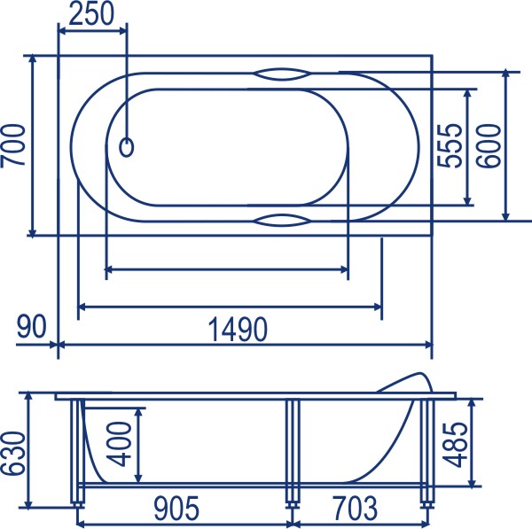 Ванна гидромассажная и аэромассажная Bach Лаура 150х70 система 4А (г/м 6 форсунок, спинной массаж 4 форсунки, аэро массаж 10 форсунок)