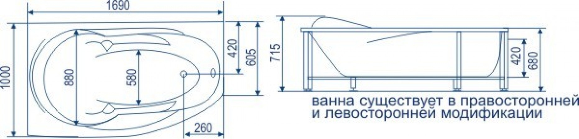 Дополнительная комплектация: Слив-перелив для ванны, Экран для ванны приобретаются отдельно.
