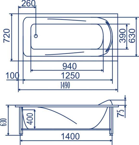 Дополнительная комплектация: Слив-перелив для ванны, Экран для ванны приобретаются отдельно.