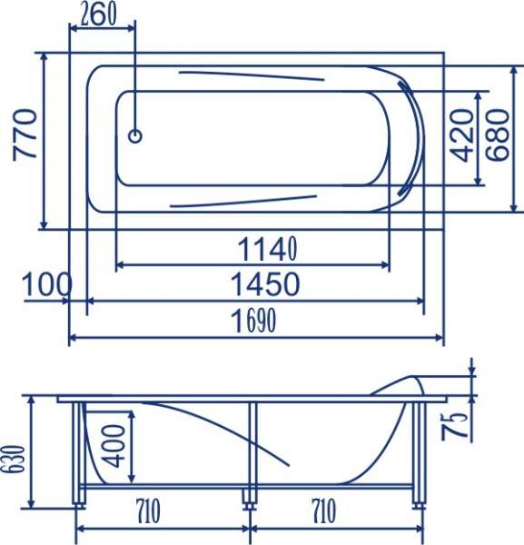 Дополнительная комплектация: Слив-перелив для ванны, Экран для ванны приобретаются отдельно.