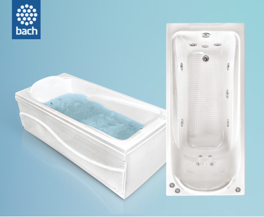 Ванна гидромассажная и аэромассажная Bach Виктория170х77 система 4А (г/м 6 форсунок, спинной массаж 4 форсунки, аэро массаж 10 форсунок)