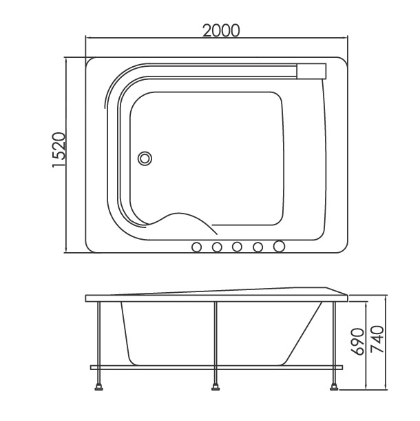 Ванна гидромассажная и аэромассажная Gemy 2000x1520x720 (G9265 K)